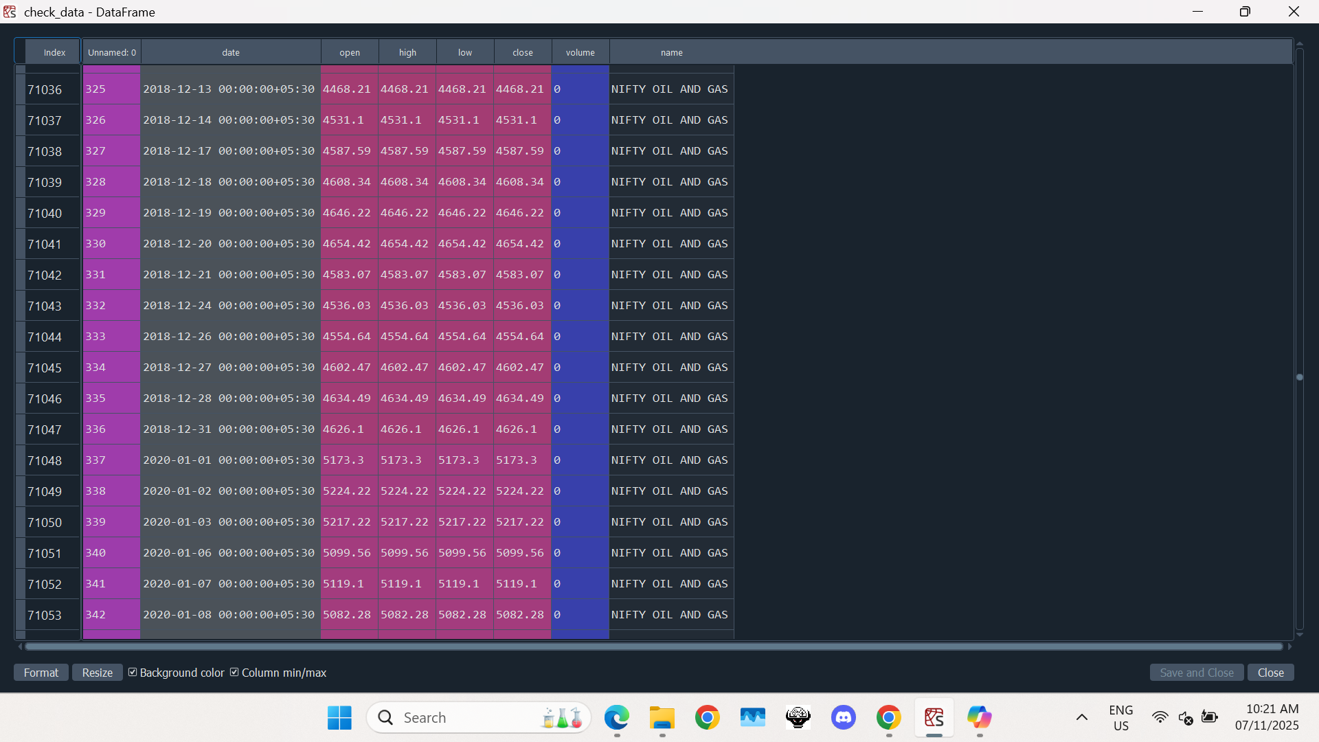 For many indices, Like Nifty oil & gas in the attached screenshot, there are various days of missing data.