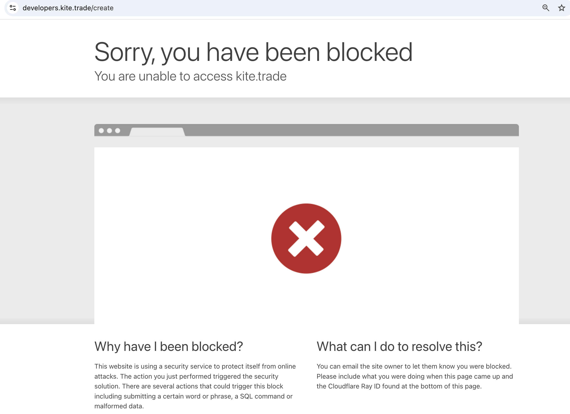 Creating new app showing site blocked by cloudflare