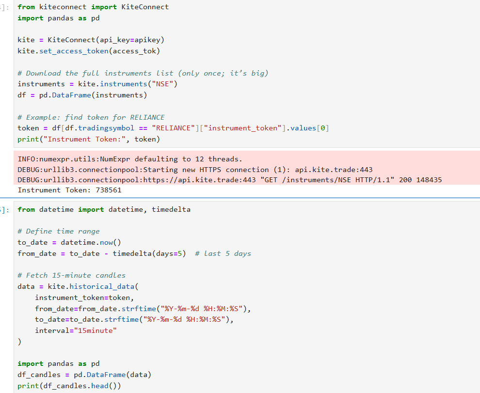 I have been trying to read historical data. By using the API key and access token i am able to fetch the instrument details but the moment i run the code to fetch the data it says invalid key, access token. I have verified multiple times that the key and token are correct however just when i run the code to fetch the data it fails.. any suggestions please.. I am new to this and feeling very overwhelmed....